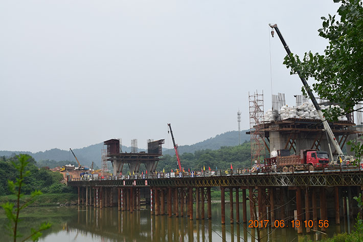 為了實(shí)現(xiàn)益婁高速公路2017年底通車的目標(biāo),5月份以來(lái),公司董事長(zhǎng)謝志方坐鎮(zhèn)益婁高速公路第十一合同段(下文簡(jiǎn)稱益婁11標(biāo))項(xiàng)目部親自抓生產(chǎn)進(jìn)度,與項(xiàng)目部全體員工同甘共苦。在公司領(lǐng)導(dǎo)的精心指揮和項(xiàng)目部全體員工的共同努力下,項(xiàng)目生產(chǎn)取得了豐碩成果。截止目前,該工程項(xiàng)目的路基土石方挖方完成70.6萬(wàn)方,填方完成67.9萬(wàn)方,93區(qū)已全部交驗(yàn),94區(qū)交驗(yàn)1500米,通涵構(gòu)造物完成30道,橋梁樁基完成375根,系梁(地、柱系梁)完成142個(gè),立柱(含上、下立柱)完成305根,蓋梁臺(tái)帽130個(gè),梁板預(yù)制644片,架設(shè)480片,如果某橋全部完成,婁底東互通橋主體全部完成,累計(jì)完成產(chǎn)值17052.2207萬(wàn)。這累累碩果是益婁11標(biāo)全體人員付出的回報(bào),也集中體現(xiàn)了在面對(duì)困難時(shí)他們身上所展現(xiàn)出來(lái)的堅(jiān)韌品質(zhì)。