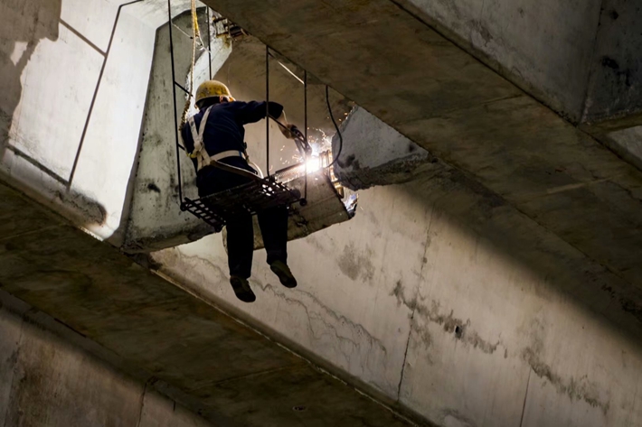奔忙、勞碌,和時間來賽跑,在春天的季節(jié)里濕透了衣背;汗水順著臉頰流下,腦門上跳動的青筋,轉(zhuǎn)瞬即逝的一個動作、一個眼神都深深與路橋渾然天成。