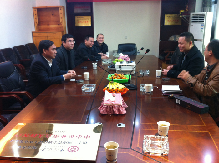 公司董事長謝志方向中國銀行株洲市支行譚文明副行長匯報公司2014年的資金使用計劃。