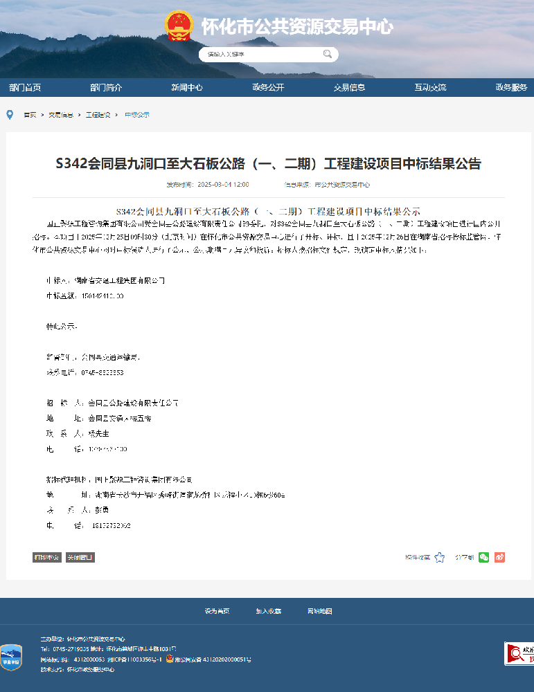 2025年3月4日,懷化市公共資源交易中心發(fā)布了S342會同縣九洞口至大石板公路(一、二期)工程建設項目中標結果公告顯示,中標人:湖南省交建工程集團有限公司,中標金額:150142410.00元,工期730日歷天。本次招標采用公開招標方式,經過嚴格的技術評審和商務評審,最終湖南省交建工程集團有限公司憑借優(yōu)異的技術方案、合理的報價和豐富的施工經驗成功中標。S342會同縣九洞口至大石板公路(一、二期)工程建設項目是湖南省“十四五”規(guī)劃的旅游公路項目,該項目建成將進一步完善區(qū)域路網結構,緩解現有交通壓力,促進區(qū)域經濟一體化發(fā)展,對推動區(qū)域經濟高質量發(fā)展具有重要意義。本項目含一期工程、二期工程,其中一期工程起點位于九洞口S342(老路樁號K106+200)與S249(往北與S342共線,往南為S249)交叉口,終點位于文家沖(K11+000)與S342會同九洞口至大石板公路(二期)相接,路線長11公里;二期工程起點位于九洞口S342(老路樁號K106+200)與 S249(往北與S342共線,往南為S249)交叉口,終點位于大石板與S342 (老路樁號K133+510)相接,路線長16.078公里。項目主要建設內容是按照二級公路標準對路基路面進行改建,包括土石方工程, 防護排水工程, 瀝青混凝土路面工程,橋梁、涵洞工程,以及綠化、沿線設施等附屬工程。湖南交建工程集團有限公司自成立以來先后承建了多項國家重點工程,積累了豐富的公路工程施工經驗,技術實力雄厚,施工質量優(yōu)良。在S342會同縣九洞口至大石板公路(一、二期)工程建設項目施工中,我公司將嚴格按照施工合同約定,組建高效、精干的項目管理團隊,根據設計要求,制定詳細的施工計劃,精心組織,周密部署,扎實推進項目建設,確保項目按期保質完工。(文/宋敏)