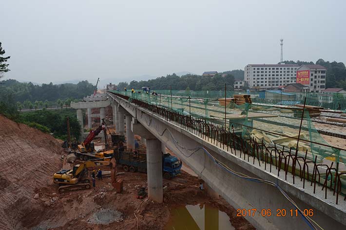 益婁高速公路第十一合同段起于湘鄉(xiāng)市壺口鎮(zhèn),穿過(guò)婁底市經(jīng)濟(jì)開(kāi)發(fā)區(qū),止于湘鄉(xiāng)市毛田鎮(zhèn)。路線上跨益湛電汽化鐵路、婁湘公路、橫跨漣水河,全長(zhǎng)8.2km,路基全長(zhǎng)5.467km,橋梁全長(zhǎng)2.733km,婁底東互通1處,合同總價(jià)2.88億元。主要工程量有:路基挖方143.97萬(wàn)方,填方119.71萬(wàn)方,通道涵洞29道,特大橋1690m/2座,大橋868m/4座,中橋175m/3座,砌筑工程5.6萬(wàn)方。其中中陽(yáng)特大橋(24*40m +35m +60m +35m +3*30m)和白鷺灣漣水河大橋(6*25m +3*40m +55m +90m +55m)為益婁高速公路兩大控制性工程。本工程于2016年5月19日正式動(dòng)工,到目前為止已完經(jīng)成合同產(chǎn)值1.99億元,占合同總價(jià)的70%。